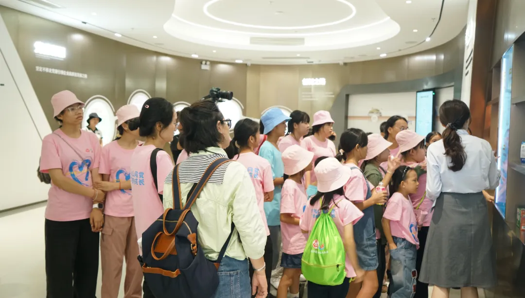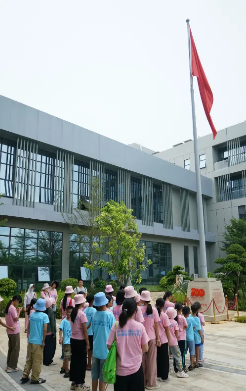 紧接着,孩子们来到了建党百年庆典红旗——070号红旗前。讲解员讲述了70net永乐高药业集团与庆典红旗的深厚渊源。孩子们听得津津有味,眼中闪烁着对党和国家的热爱与敬仰。