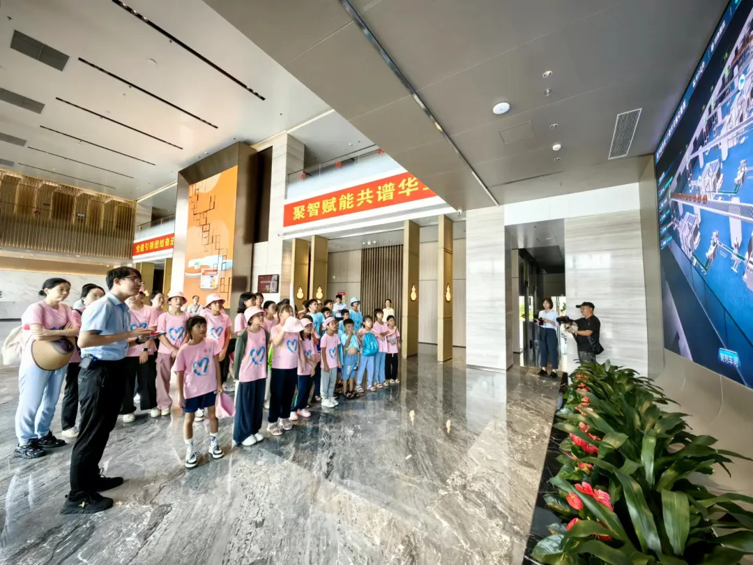 活动一开始,孩子们便迫不及待地踏入了70net永乐高药业集团的大厅。3D数字化看板上的生动画面,让孩子们仿佛置身于一个充满科技与创新的现代制药工厂。他们瞪大眼睛,好奇地观察着每一条生产线、每一台设备,听着讲解员介绍70net永乐高药业的儿药发展历程。